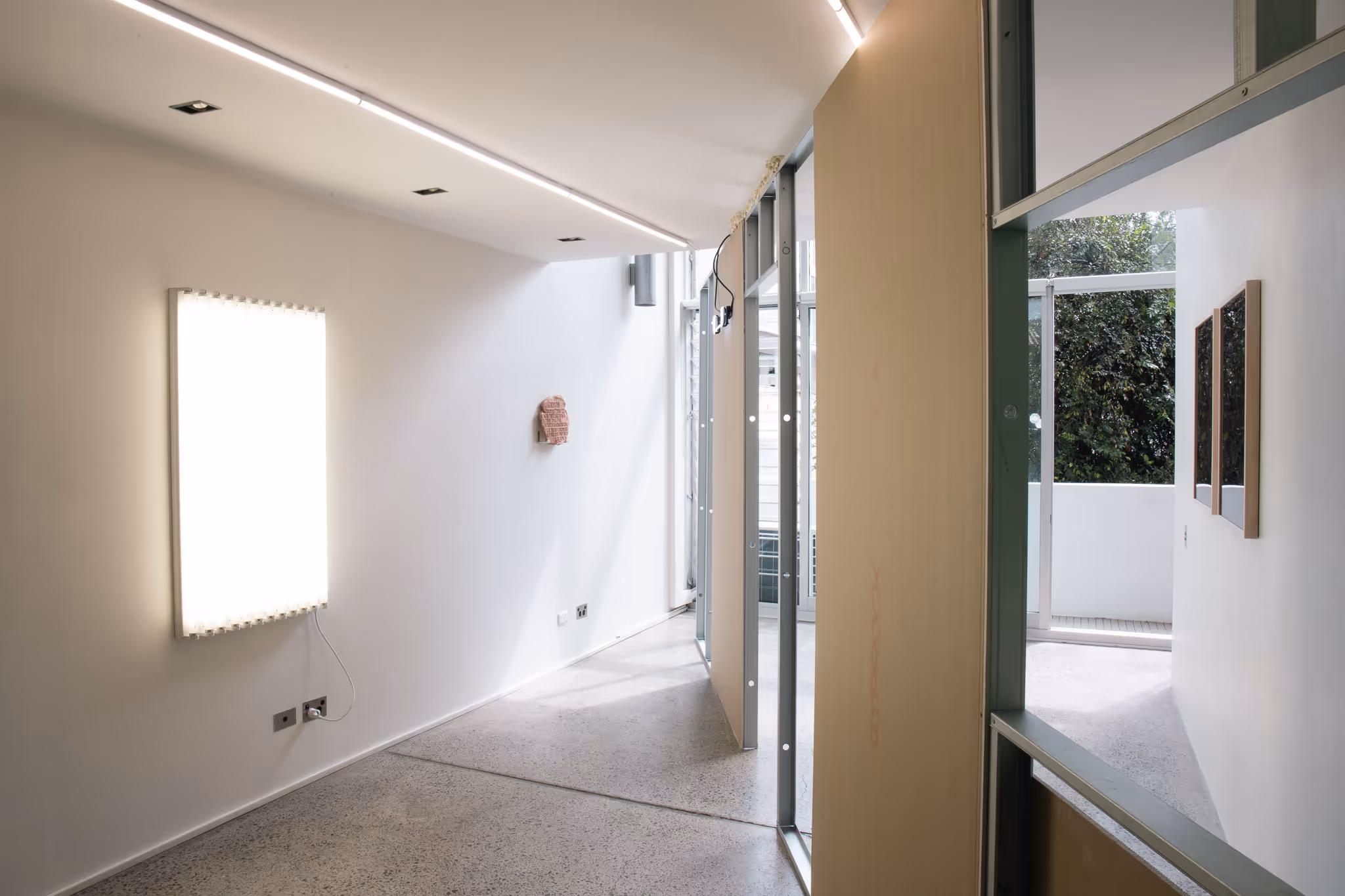 The gallery or Museum wall has traditionally functioned as the physical and visual frame of our engagements with artworks. Although this frame has been rejected and abandoned countless times by artists preferring to find contexts free from a reliance and the confinement of the white cube paradigm, In my practice this disputed and critical framework has been an important part of the complex medium we call installation and has functioned as a site and subject for experimentation, formal innovation and critical questioning. From the optical vertical axis of thewall to the horizontal axis of the art object parallel to the art space floor, the historical consideration of painting and sculpture as two distinct and separate disciplines is no longer fixed. The historic removal of the plinth aligned the sculpture's vertical axis to the height of the viewer's body positioned on the floor. Performance and time based mediums in installation created even more fluid states of movement between art mediums until in the post-medium they have become interchangeable with one another.