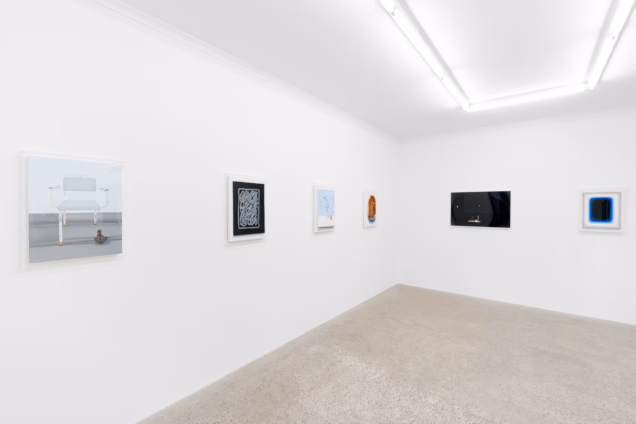 Installation View: Floor Talks & Installs ‘entries & exit points’, Galerie Pompom, 2021. Center: Floor Talk / Install – RESTAGING RESTAGING, a series of eight 20-minute performances at Alaska Projects, Sydney, in 2014. Featuring performances by Ivan Cheng, Shane Haseman, Frances Barrett, Matthew Linde, Bianca Hester, Lizzie Thomson, Matt Prest, Atlanta Eke, Clare Wohlnick, et al.. In the somewhat unusual gallery space in the basement of a Kings Cross car-park. Oil on Canvas, Perspex, 120cm x 170cm x 4cm, 2021